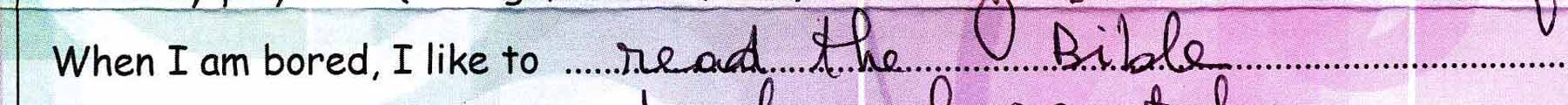 What do you do when you are bored? For most people, myself included, my guess is that reading our Bibles would not be the first way we’d think to spend that time. In Rosine‘s letter to me today, she let me know that reading the Bible is the very thing she chooses to do when she is bored.